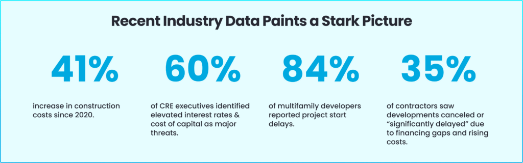 In short, CRE developers are operating in a perfect storm of tighter capital, pricier materials, and economic uncertainty.